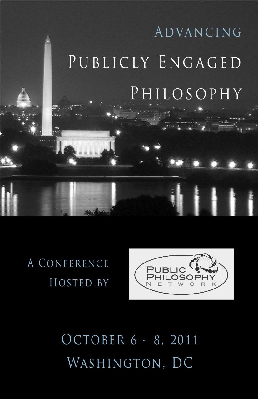 I am only now catching my breath — in between teaching and before I head off to my next conference — to stop and reflect on the Public Philosophy Network’s first conference. Never mind the bias that I was a co-chair. I just helped throw the party. But the party glittered because of everyone who really helped create it. It was fabulous, with participants ranging from graduate students doing amazing public philosophy work via youtube (e.g Cori Wong) and in poetry slams in NYC (Travis Holloway) to renowned philosophers working on climate change and poverty (Thomas Pogge and Henry Shue) as well as journalists E.J. Dionne and Hannah Rosen, political theorists Bill Galston and Mark Sagoff, Penn State’s Anita Allen, and more than a hundred other amazing people.